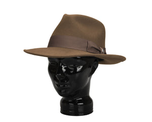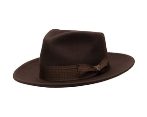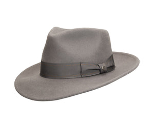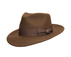 A rare breed in the hat world, a dress hat with an 8cm brim. A trend we welcome back with open arms. Practical & Smart! The Swindle's brim is a "Convertabrim", meaning both the front and back of the brim can be lowered to change the shape of the hat. If you are familiar with hat terminology already, this is a snap brim, but a useful one at that. Finished beautifully in a heavy weight wool felt with a textured grosgrain ribbon, this hat is an everyday wear and one you could wear easily formally or otherwise.
