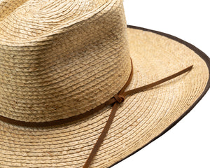 A country favourite, this wide brim hat is a sun safe workhorse. A braided palm straw construction makes for a lightweight yet sturdy wear and the bound edge helps contain the shape of this fantastic brim. With a semi-pinched square crown and a rodeo brim lift, this hat is at home in the vast Australian inland, the Billabong is a fitting name.