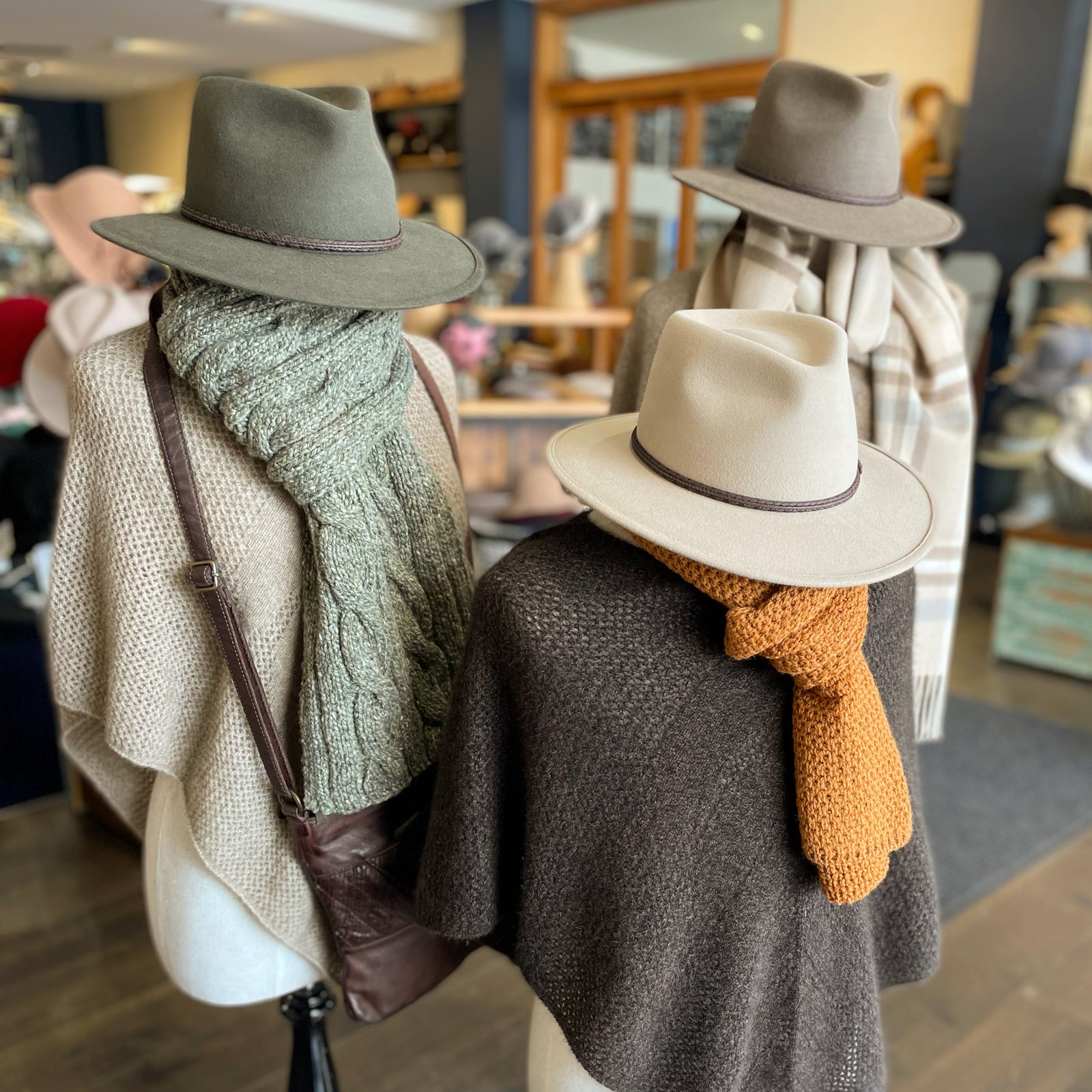 Our range caters to our extreme local weather. All year long you'll find a dedicated winter and summer section. We're just as likely to wear our winter Berets in Summer as we will our Straw Panama's in Winter, Katoomba is never dull!
