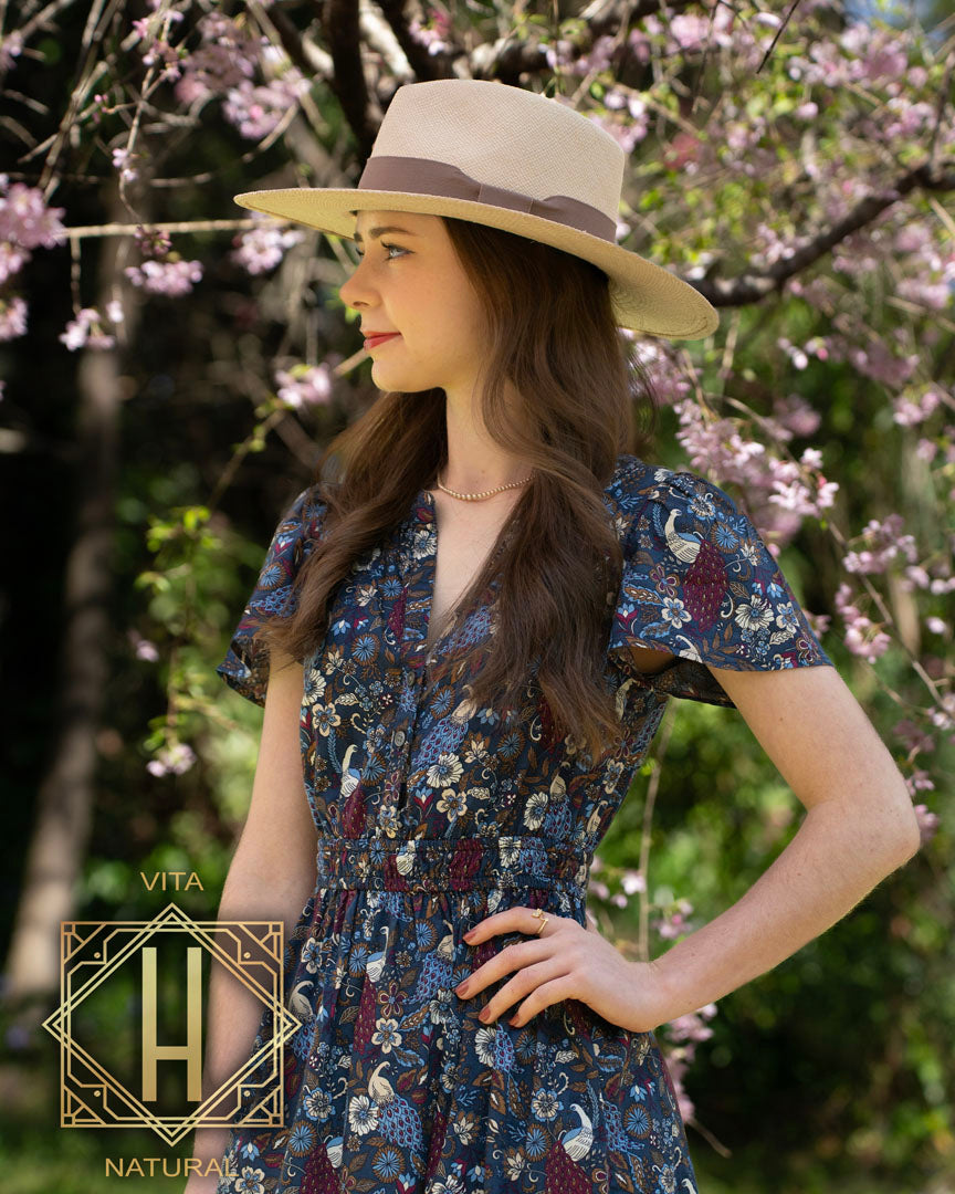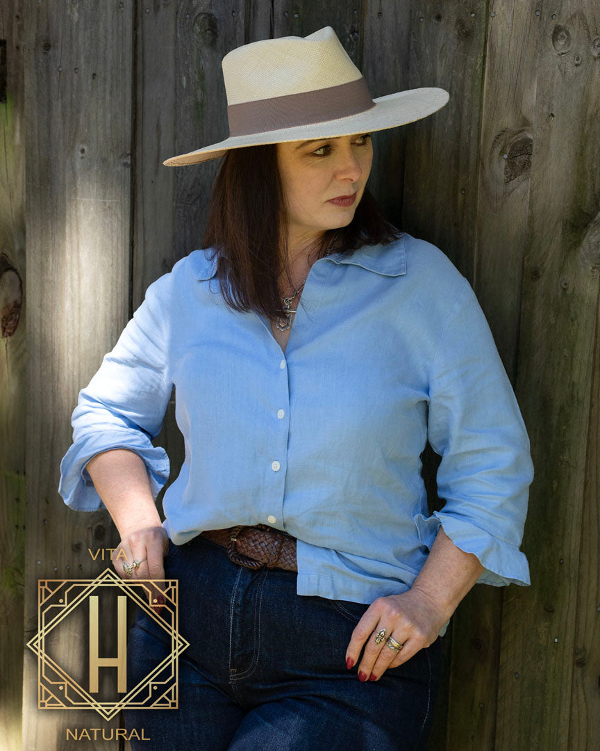 A refined, wide brim fedora, the Vita is a beautiful work of Millinery art. A 38mm Italian ribbon adorns the neatly pinched crown that tapers beautifully for the wearer. A classic silhouette thats been worn for 100 years, never out of style.