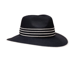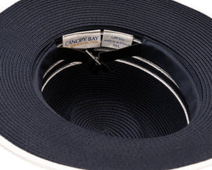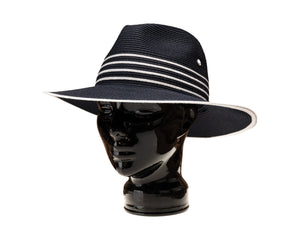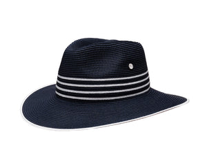 Deborah Hutton's Canopy Bay Bonville is a Flexi-Braid, lightweight summer style. Elegantly trimmed with thin white stripes around the navy coloured crown. Flexi-Braid technology allows this stylish hat to be easily packed.