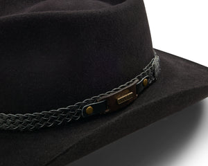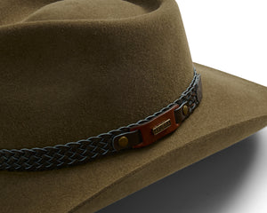 The Snowy River is an iconic Akubra style with it’s distinctive low crown, upturned brim and plaited bonded leather hatband.