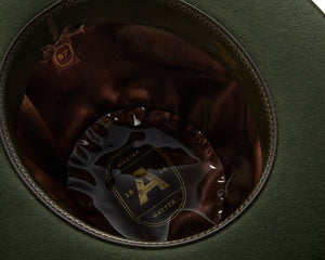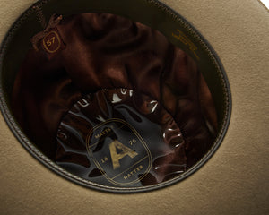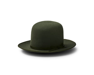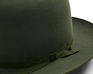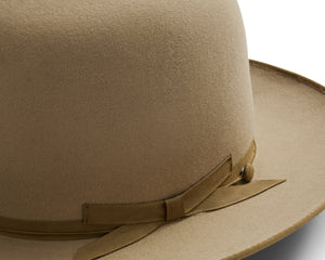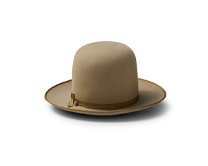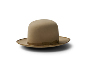 A best selling open crown style for so many reasons. A blank canvas, this hat can look so different depending on how you shape it, you put your personality into it. Recognisable by the elegant 12mm ribbon trim and vintage wind trolley.