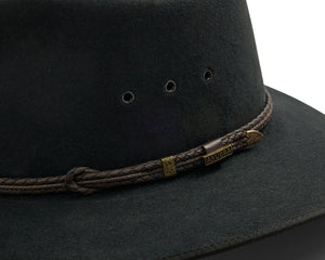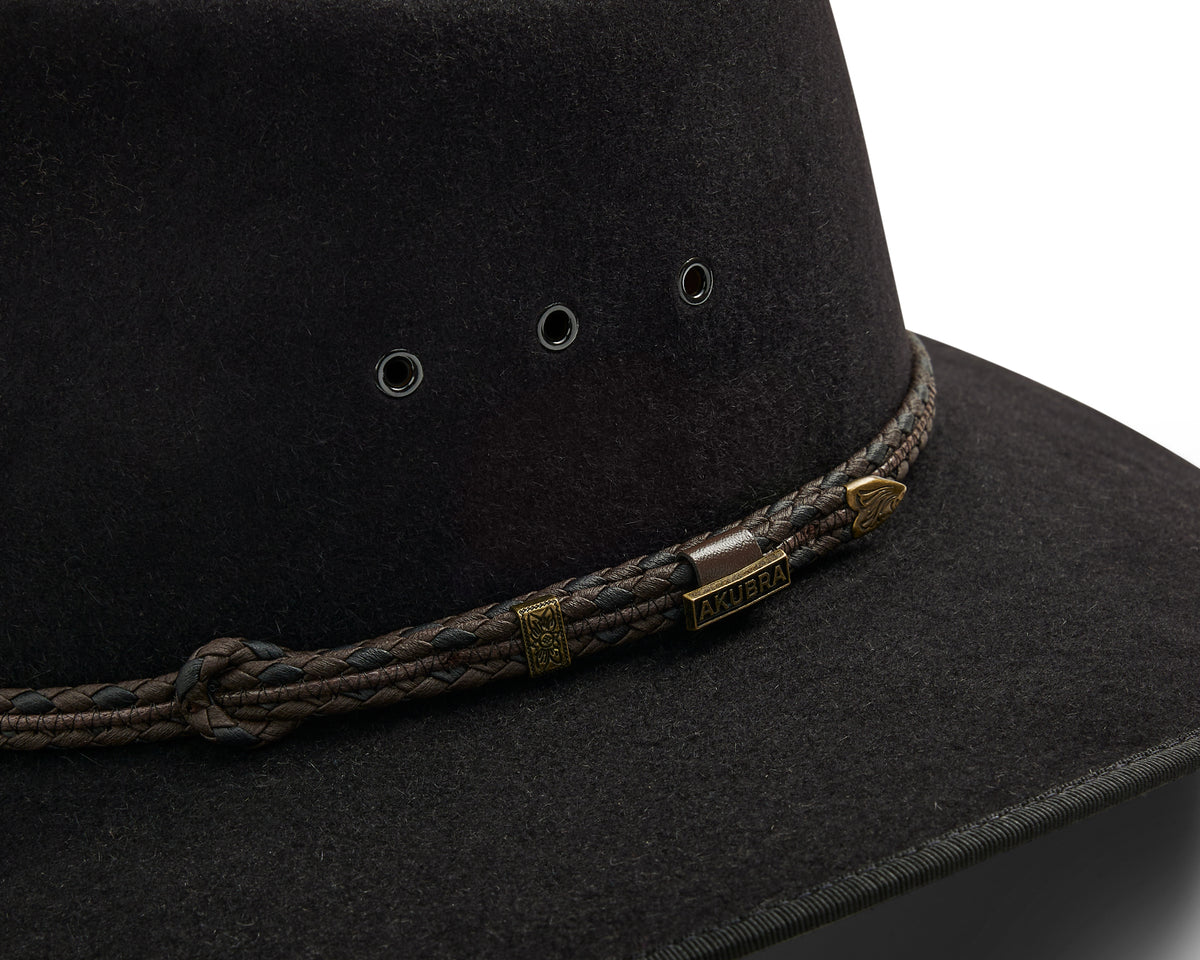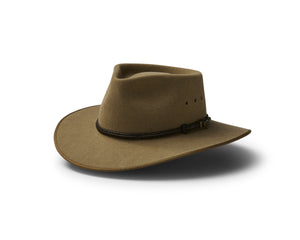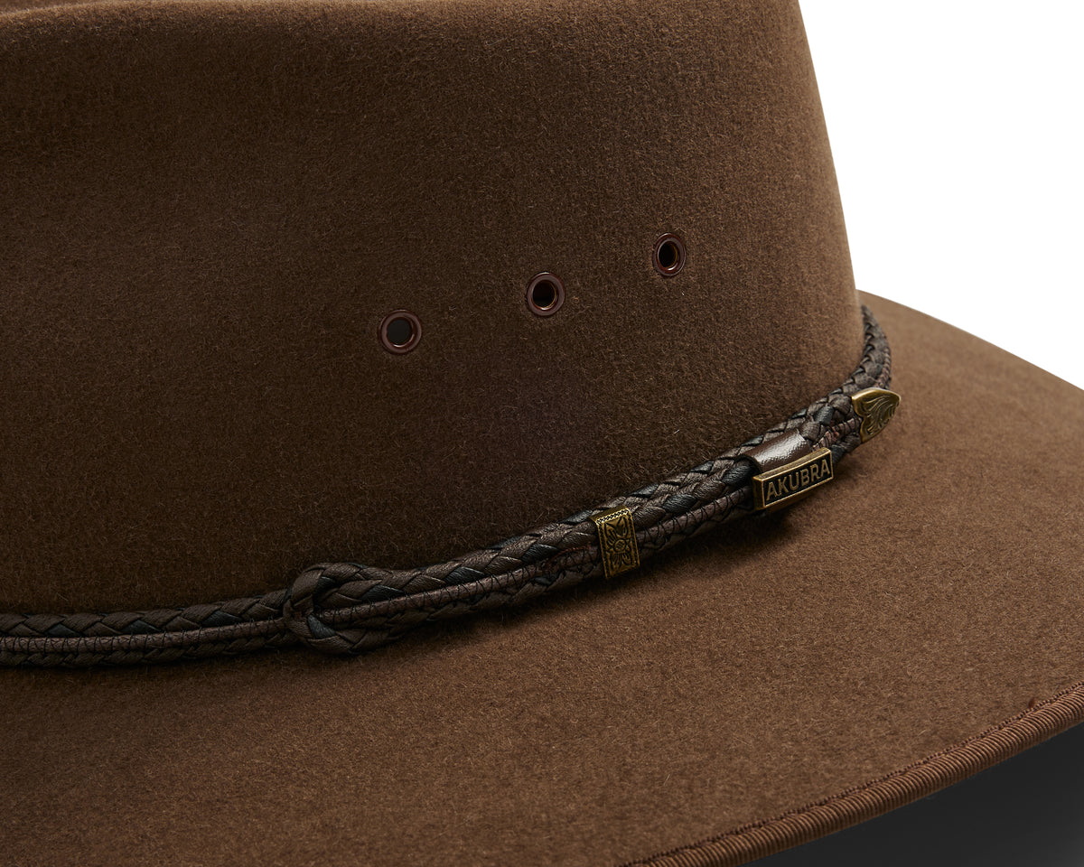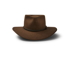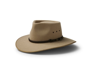 This country style is a classic that is instantly recognisable as an AKUBRA, the best selling hat in Australia for decades. The shallow round crown is a contrast to the high rising cowboy styles of the United States and is therefore iconically Australian. A simple yet sturdy braided leather trim makes for a no-nonsense, hard wearing hat.