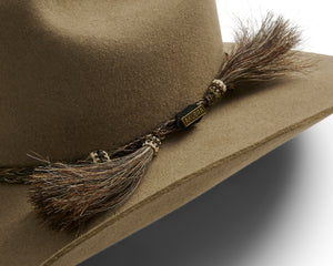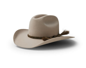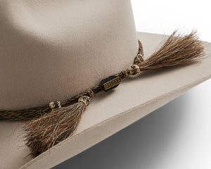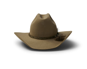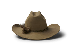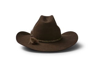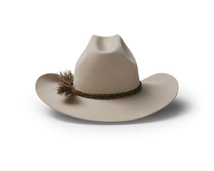 This style features a pro rodeo brim and centre creased western crown. Known in the USA as the Cattleman’s crease. We love the fancy braided double horse hair hat band that contrasts with the felt so well.