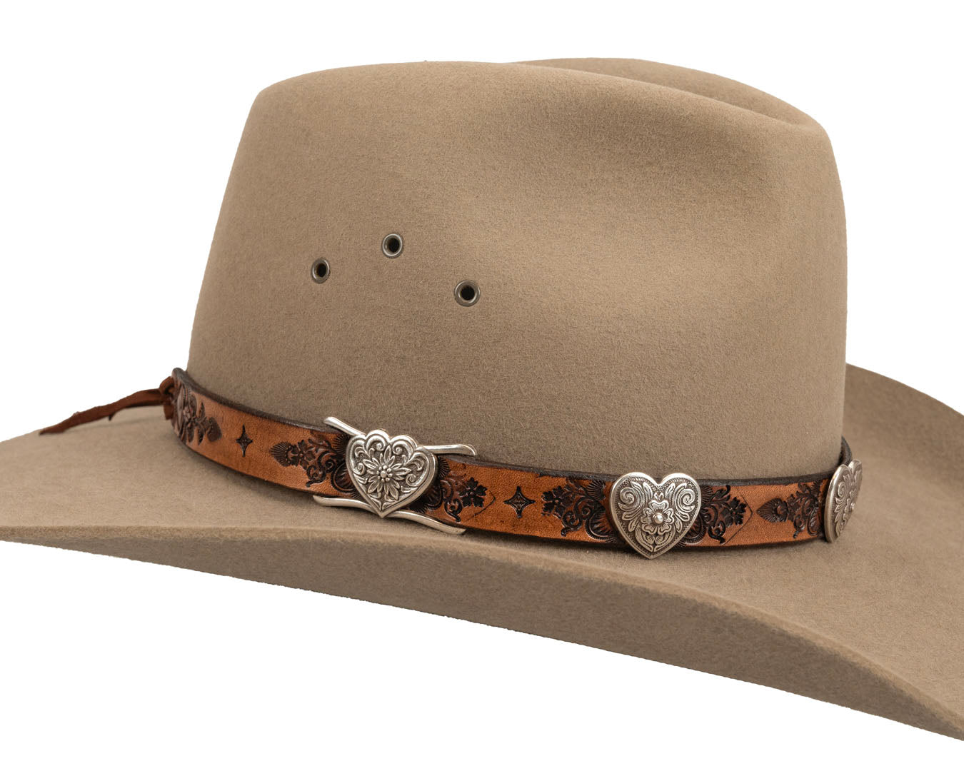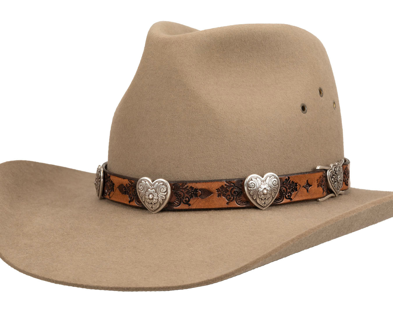 Romantic Western Hat Band | Heart Conchos