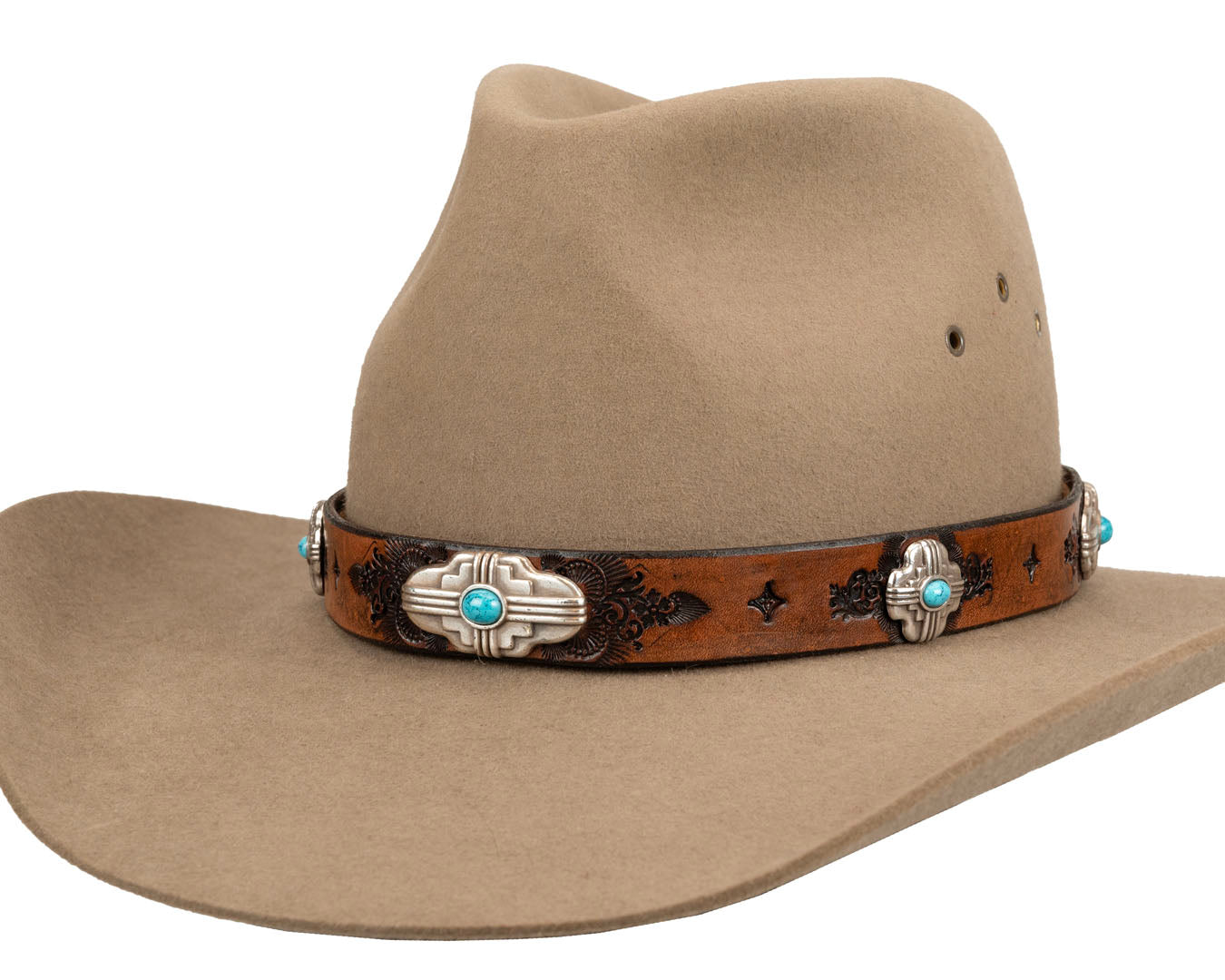 Turquoise Western Hat Band | Four Directions Conchos