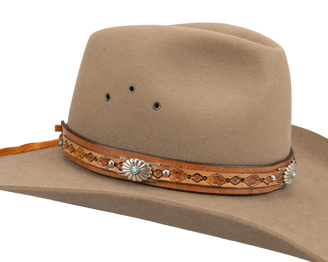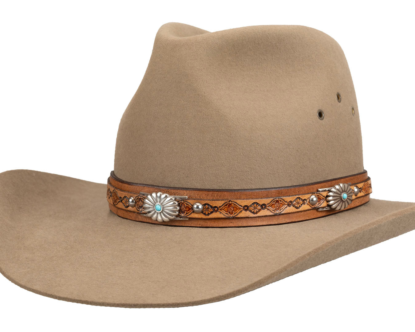 Turquoise Western Hat Band | Floral Conchos #1