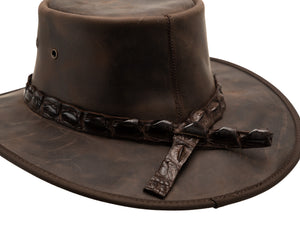 Note: Due to the crocodile band, this hat can not fold down like the rest of the Barmah leather range.