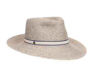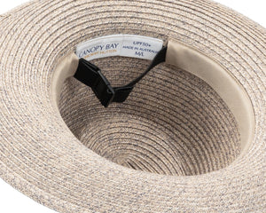 Deborah Hutton's Canopy Bay Arcadia is a Uni-Sex, Flexi-Braid, lightweight summer style. Elegantly trimmed with a tri-tone ribbon. Flexi-Braid technology allows this stylish hat to be easily packed. Made using a denim and grey colour way, this hat pairs easily with any outfit.