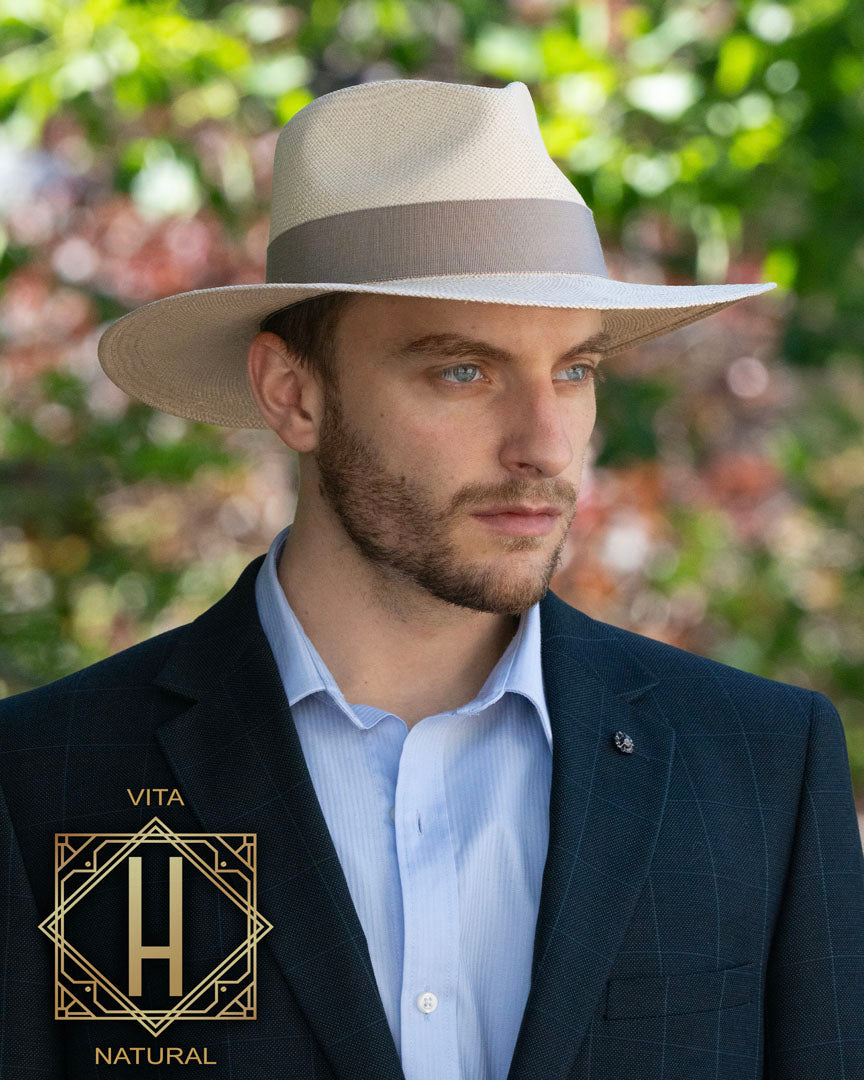 A refined, wide brim fedora, the Vita is a beautiful work of Millinery art. A 38mm Italian ribbon adorns the neatly pinched crown that tapers beautifully for the wearer. A classic silhouette thats been worn for 100 years, never out of style.
